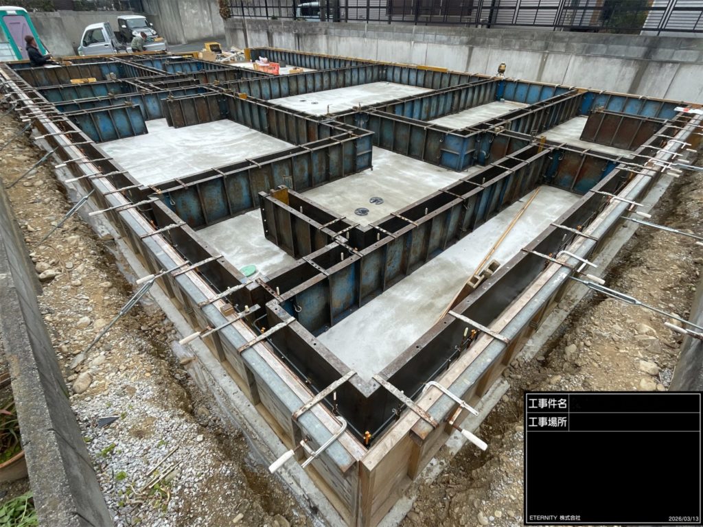 いよいよコンクリート打設!! 型枠がバラされると基礎全景が確認できます。